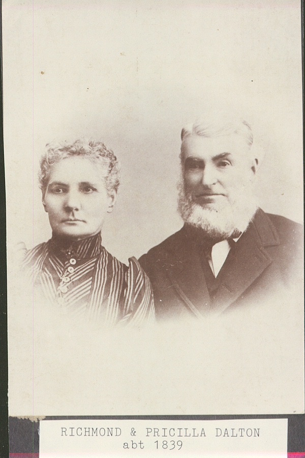 From there Richmond and Priscilla moved to DeKalb County, Missouri, before 1855. So they moved from DeKalb County, Illinois, to DeKalb County, Missouri. In the 1860 Census Richmond is listed, in Washington Township, Dekalb County, Missouri, as a farmer along with his wife Priscilla and their eleven children. The book History Andrew and DeKalb Counties Missouri from the Earliest time to the Present, dated 1888, lists Richmond Dalton along with many others as an early settler of Washington Township. Richmond had property that showed up on the tax list there.